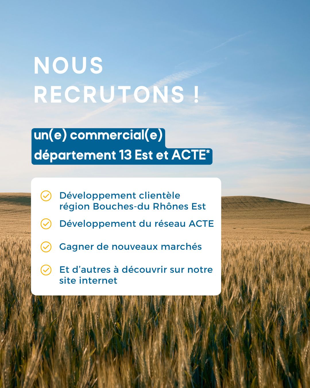 Offre d’emploi : Commercial(e) Département 13 Est / Acte PACA – H/F